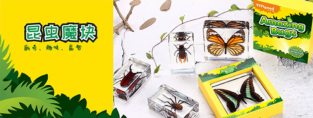 昆蟲魔塊系列產(chǎn)品,是由昆蟲包埋標(biāo)本配套觀察工具組成。標(biāo)本晶瑩通透、精致小巧,昆蟲自然真實(shí)、栩栩如生,激發(fā)孩子的無限好奇。通過對(duì)昆蟲標(biāo)本的觀察、認(rèn)知,培養(yǎng)孩子的興趣愛好、觀察能力和探索能力。