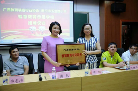 2018年6月27日上午,廣西教育裝備行業(yè)協(xié)會(huì)智慧教育示范學(xué)校掛牌儀式在南寧玉蘭路小學(xué)舉行,標(biāo)志著南寧市玉蘭路小學(xué)新時(shí)代教育信息化發(fā)展駛?cè)肓丝燔嚨,具有里程碑式重要意義。與會(huì)領(lǐng)導(dǎo)、全國(guó)教育裝備界的各知名企業(yè)代表、愛(ài)心人士、家長(zhǎng)代表、教師代表,一同出席了活動(dòng),見(jiàn)證了這一歷史性的時(shí)刻。