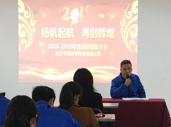 總經(jīng)理黃曉春總結(jié)了2018年公司的整體運(yùn)營情況,明確了2019年的戰(zhàn)略目標(biāo)和發(fā)展思路:2018年千帆公司在惡劣的市場環(huán)境下依然取得不錯(cuò)的成績,這是全體千帆人共同努力的結(jié)果。但是,我們還存在許多不足,新的一年,我們必須直面問題、解決問題,加速重點(diǎn)市場的拓展,完善和優(yōu)化公司內(nèi)部管理。期望公司全體員工在新的一年里振奮精神,攻克難關(guān),再接再厲,繪制千帆公司的新篇章。黃總的講話站得高、看得遠(yuǎn),使每一個(gè)千帆人都感受到了公司的光明前景,更加堅(jiān)定了我們的信心。