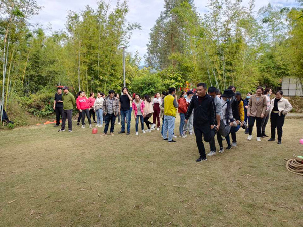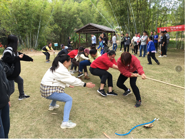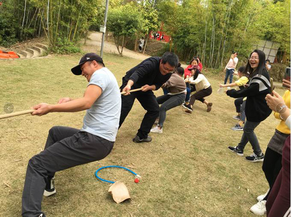 懷著激動的心情,經(jīng)過短暫的車程后,大家于10:00左右來到本次活動的目的地--長龍歡樂谷山莊。首先,分組進(jìn)行了豐富多彩的體育運(yùn)動,有六人單腳跳、運(yùn)輸氣球、拔河等項(xiàng)目。在運(yùn)動中,大家團(tuán)結(jié)協(xié)作、歡聲笑語,平日里高強(qiáng)度的工作壓力被釋放一空;顒永送轮g的距離,更增強(qiáng)了集體榮譽(yù)感。